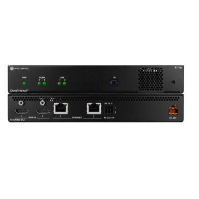 The Atlona OmniStream™ 512 (AT-OMNI-512) is a networked AV encoder with two independent channels of encoding for two HDMI sources up to UHD @ 60 Hz and HDR plus embedded audio and RS-232 or IR control pass-through. It is part of the OmniStream R-Type Series designed for high performance flexible distribution of AV over Gigabit Ethernet in residential and commercial applications. The OmniStream 512 is HDCP 2.2 compliant and ideal for the latest as well as emerging UHD and HDR sources. It features visually lossless compression optimized for motion video pristine-quality imaging and extremely low sub-frame latency from encode to decode – critical for demanding applications such as gaming. This dual-channel encoder is housed in a half-width rack enclosure and is ideal for high-density compact installation in a centralized equipment location.