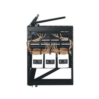 Our Swing Frame Rack has an innovative open-back wall mount design ideal for mounting over existing equipment and physical obstacles (conduit telephone equipment etc.). Use for mounting patch panels hubs and switches in a secure room or closet. Rugged steel construction with 100lb weight capacity – the greatest strength in its class.